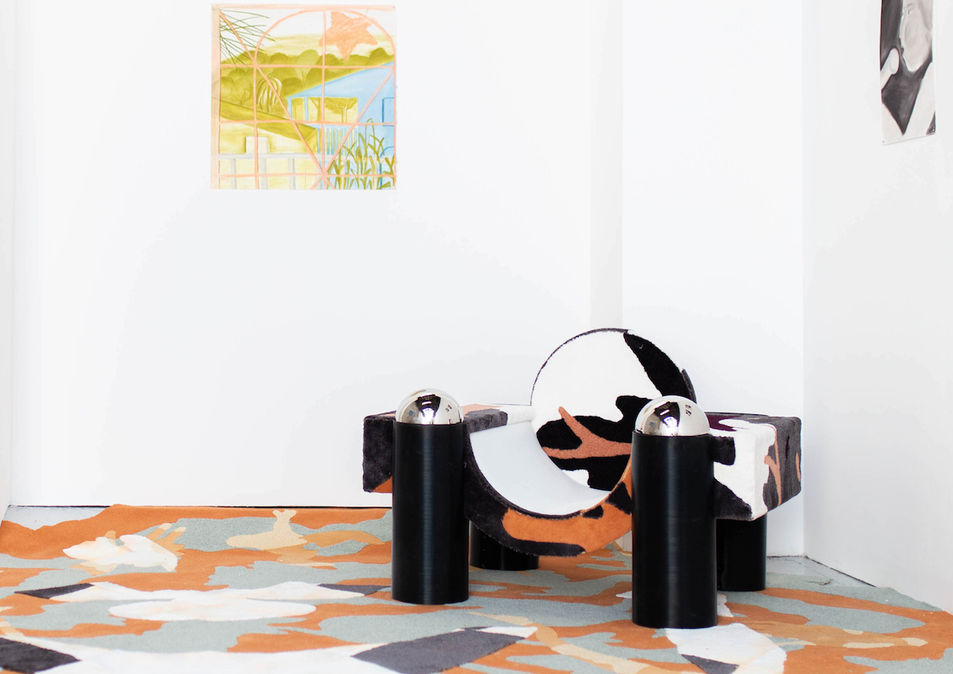 To enter a designated space, therefore, is to enter a private, social (and cultural) situation that is administered under alternative formalities. The soft bounciness of carpet, fibres between toes, the smell of a rug’s unblemished pile, the framed image, the repeated figure, and the landscape—all recall the sensual and memorial. It is through the material that the works become transcendent, creating archetypal encounters through content and construction.