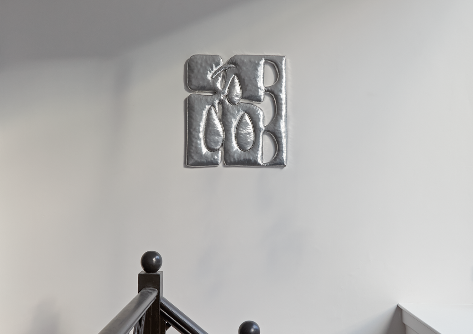 Bregje Sliepenbeek’s practice revolves around the transformation of materials. She is fascinated by the metamorphosis she can impose on metal, the magic of reshaping a cold, hard material into something soft and organic. The flat aluminum sheets she uses morph under her hands into curved, pillow-like forms, almost bodily. Bregje explores the material’s possibilities in a tactile manner, as if she cannot bear the hardness of the metal and wants to imbue it with feminine softness. This results in installations and relief sculptures often containing botanical and historical architectural references.